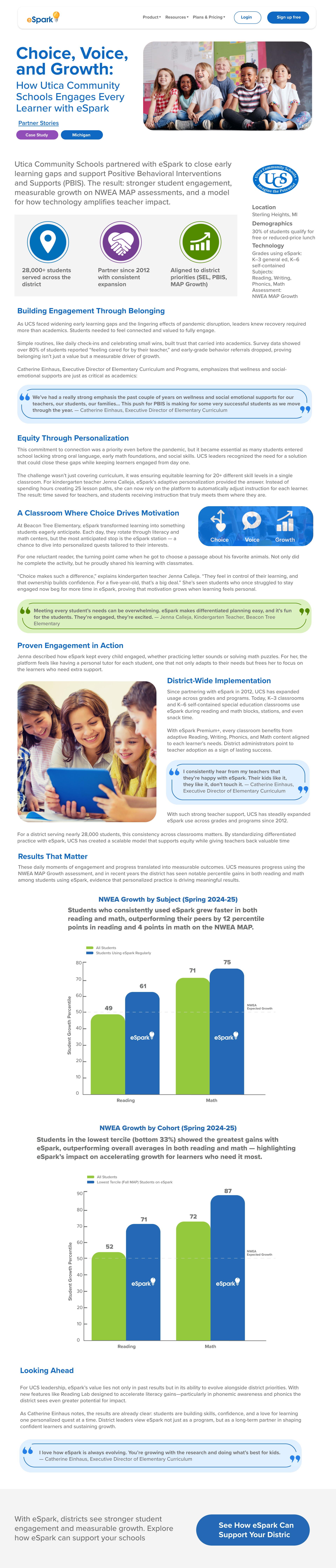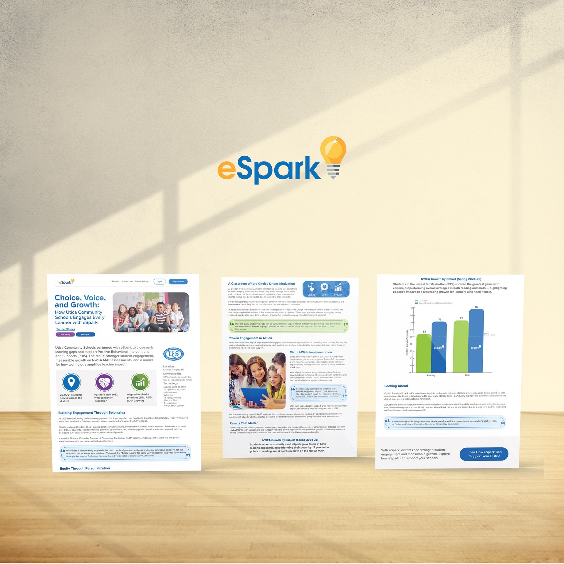 This case study was developed from end-to-end ownership, including educator interviews, qualitative research synthesis, and quantitative data interpretation. The work translates complex instructional outcomes and assessment data into a structured, accessible narrative designed for district leaders, emphasizing clarity, hierarchy, and consistency across long-form digital presentation and supporting visuals.